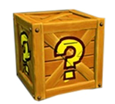 側面に?と描かれた箱。主に複数のりんご、クラッシュプレート、アクアクが中に入っている。